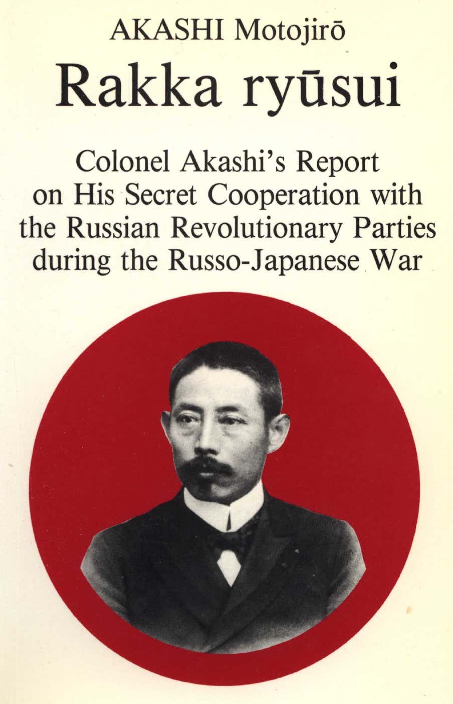 El libro se titula: «Rakka ryusui» [Colonel Akashi’s Report on His Secret Cooperation with the Russian Revolutionary Parties during the Russo-Japanese War], y fue publicado por la SHS o Suomen Historiallinen Seura. La obra contiene una semblanza biográfica del coronel y el resumen de sus actividades y más adelante se incluye un extenso informe sobre la sociedad y la economía rusas elaborado por él mismo; y, sobre todo, un estudio detallado sobre los partidos políticos de oposición en Rusia. Esas páginas venían a ser un pre análisis de los objetivos que debía cumplir: inhabilitar o sabotear el ferrocarril Transiberiano que llevaba tropas y suministros rusos al frente de Manchuria; y apoyar a los partidos radicales de izquierda (incluyendo a los seguidores de Lenin) y a los nacionalistas polacos y finlandeses a fin de promover revueltas y revoluciones en el seno del imperio ruso.